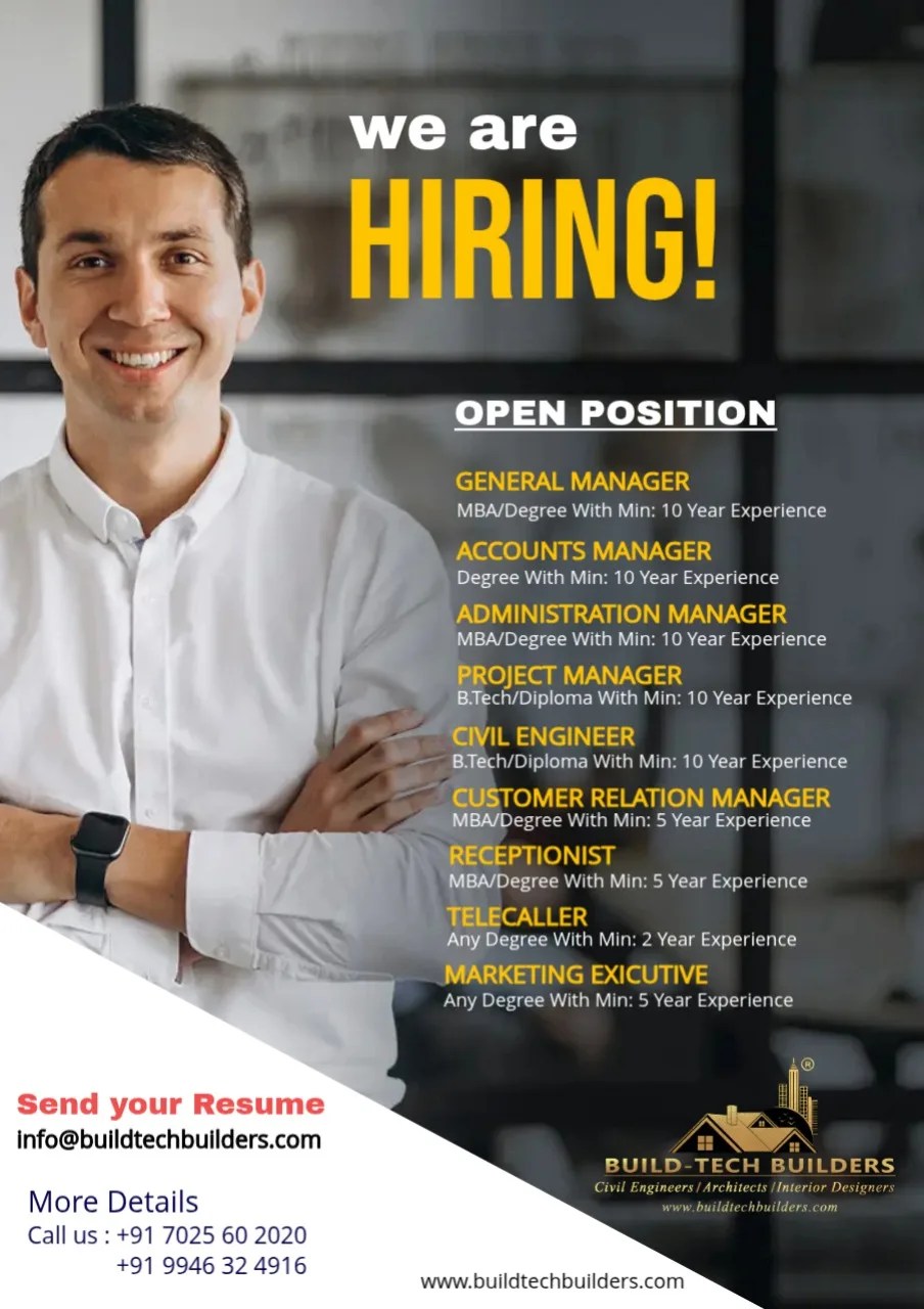 | Other Vacancies | Site Engineer, Account Manager, Marketing Manager, Security, Tele-Caller,Receptionist |